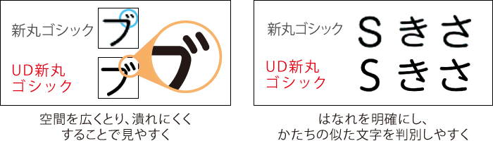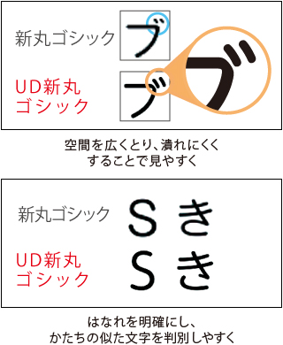 濁点・半濁点や文字のはなれた部分を明確にした、読みやすいUD新丸ゴシックフォントを採用。見やすさにこだわり抜いたフォントです。