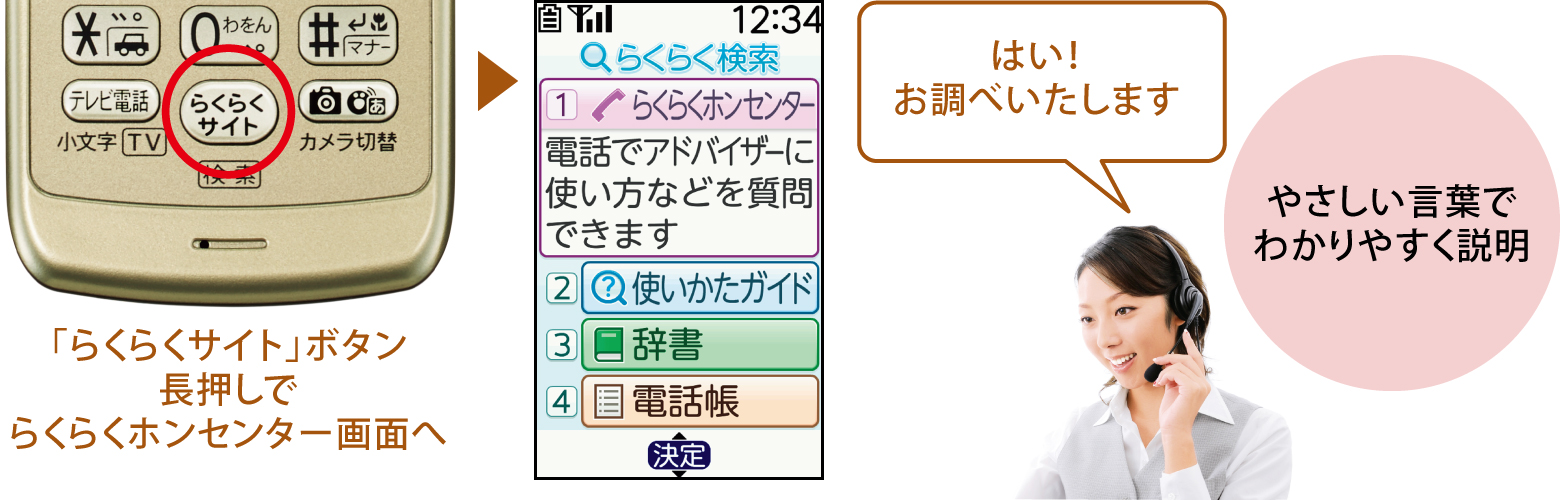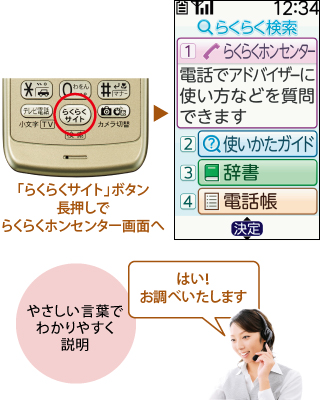 【あんしん】 らくらくホンなら使い方を教えてくれるから、あんしん