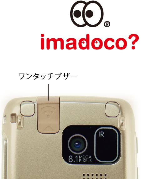 大音量で自分の居場所を知らせるワンタッチブザー機能を搭載。ブザーが鳴ったと同時に、登録してある相手に自動で電話をかけて緊急であることを知らせることもできます。また、イマドコサーチと連動して居場所を知らせることができます。