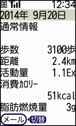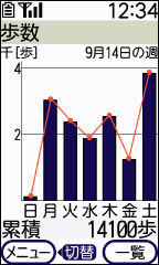 「歩数」「歩いた距離」が表示できる歩数計を搭載しました。また、特定の相手のメールアドレスを登録しておけば、1日の歩数記録が自動で相手にメール送信されるので、離れて暮らすご家族の方もあんしんです。