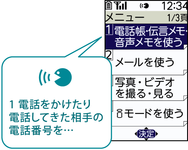 便利な音声読み上げにも対応。メニュー内容はもちろん、電話帳、メールなども読み上げます。