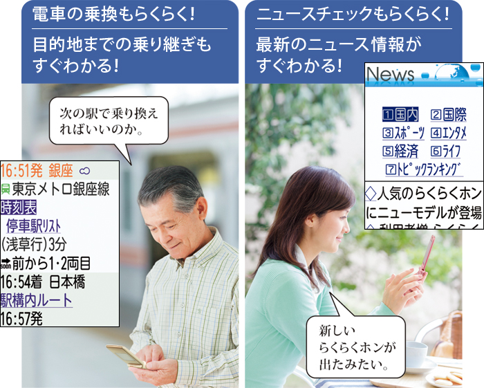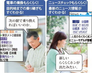 電車の乗換もらくらく! 目的地までの乗り継ぎもすぐわかる!/ニュースチェックもらくらく! 最新のニュース情報がすぐわかる!