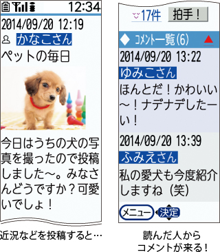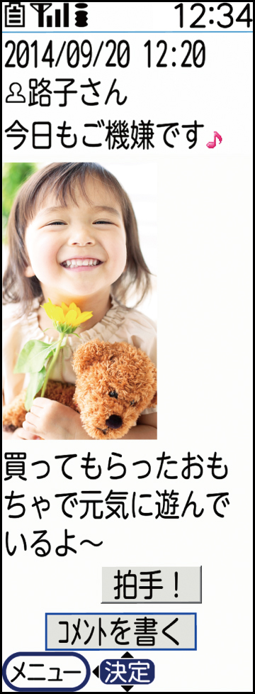 お孫さんの成長やご家族の近況などを、写真やメッセージを通じて会話のように楽しむことができる「ファミリーページ」。離れて暮らす家族が楽しみながらつながる新しいコミュニケーションの形です。