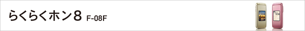 【「しんせつ」「かんたん」「見やすい」「あんしん」の使いやすさと充実の便利機能で楽しさ広がる。】 らくらくホン8 F-08F/らくらくホンシリーズは、使う人の声に耳を傾けながら、10年以上にわたって常に改良・進化を続けてきました。愛され続けて、累計販売台数約2300万台(注1)の実績に裏付けされた使いやすさは、らくらくホンシリーズだけ。らくらくホン8は、使いやすさはそのままに810万画素のカメラ、ワンセグ、ワンタッチブザーなど、便利で楽しい機能が充実の一台です。/防水、810万画素おまかせカメラ、ワンセグ、ワンタッチブザー、らくらくホンセンター/(注1:富士通製らくらくホンシリーズの累計。2014年7月末現在(富士通調べ)。)