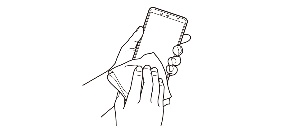1. 本端末をしっかりと持ち、前面、背面を乾いた清潔な布などでよく拭き取ってください。