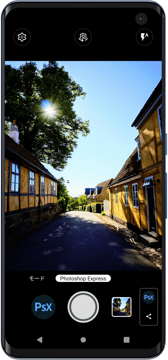 Photoshop Express モードなら、シャッターを押すだけでアドビの自動補正。