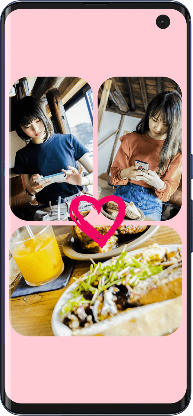 いいね!な光景を目の前にしながら、伝えたい気持ちを写真にのせる、 arrows 5Gなら、撮影から編集までが流れるような体験になります。