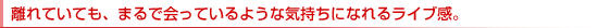 声だけでは伝えきれない感動や興奮まで、相手に届けることのできるテレビ電話。“スピーカーホン機能"※1を使うことにより、スピーカーから相手の声が聞こえるようになるので、自然なスタイルでの会話が可能になります。