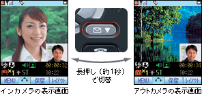 シチュエーションに合わせて、インカメラとアウトカメラをワンタッチ※2で切り替えることができます。