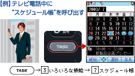 「メール作成」、「スケジュール帳」、「電話帳」といった、よく使う機能だけを選んでオリジナルのメニューを作成できるので、素早い操作が可能です。 |