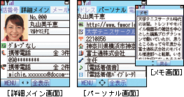 郵便番号や住所、会社名などのほか、メモ欄には全角100文字もの個人情報を書き込むことが可能。ビジネスにも使えるハイスペックな写真付き電話帳です。 |