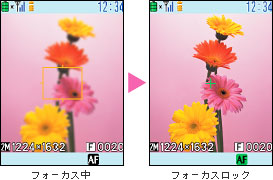 F506iはオートフォーカスを装備。サイドボタンを半押しするだけで、近距離から無限遠まで、ピントの合った撮影ができます。さらに、フォーカスロックをかければ、ピントを合わせたまま、さまざまな構図を選べます。