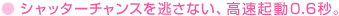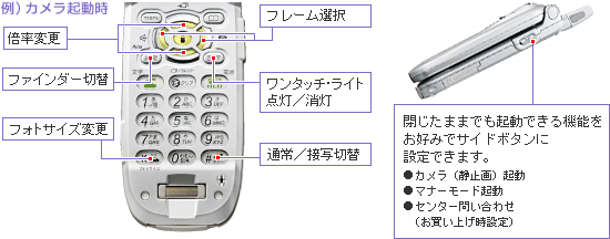 そんなチャンスを逃さないために、F506iではカメラの起動時間を0.6秒まで短縮。これなら、決定的瞬間も逃すことはありません。また、あらかじめ設定しておけば端末を閉じたままでも撮影可能なので、撮りたいときに素早く撮れます。