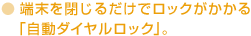 端末を閉じるだけでロックがかかる「自動ダイヤルロック」。