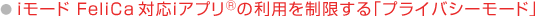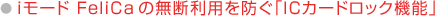 第三者によるiモードFeliCa対応iアプリの起動を阻止できるので、利用履歴や個人情報の改ざんなどもされる心配がありません。