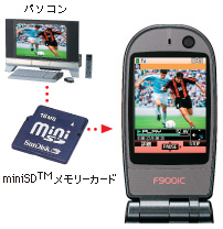 録画したテレビ番組をF900iCで再生することができます。富士通製パソコン「FMV※1」で録画したデータを、miniSDメモリーカードに入れ、ケータイのスロットに入れるだけ。これなら、場所を選ばずテレビ番組を鑑賞できます※2。