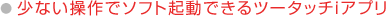 よく使うiアプリをツータッチ登録しておけば、待受画面から2回のキー操作だけでソフトを起動することが可能です。