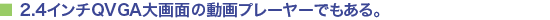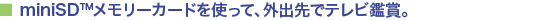 録画しておいたテレビ番組を外出先で観たい。そんなときはパソコン※1で録画したデータを入れたminiSDメモリーカードを専用のスロットに。2.4インチの大画面でいつでも気軽に再生できます※2。