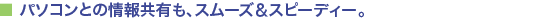 卓上ホルダは、USB接続端子付き。本体を置くだけでパソコンに接続することができます※1。CD-ROMにて標準添付のデータリンクソフト※2※3で、パソコンへのデータバックアップやリストアに加え、Microsoft(R)Outlook(R)※4と連携し、電話帳やスケジュールのデータシンクロができます。