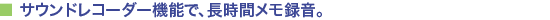 カメラ機能起動中のモード切り替えにより、音声のみの録音が可能に。ボイスメモはもちろん、最大217分※の録音が可能なので、長時間の会議や講座などの記録用にも使うことができます。