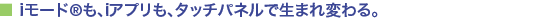 iモードサイトのブラウジングも、とてもスムーズ。リンクの選択や画面のスクロールがワンタッチでできます。iアプリでは、タッチ対応アプリケーションを3種類プリインストール。タッチパネルならではのダイレクトな操作性で、iアプリが楽しめます。