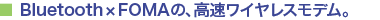 Bluetooth内蔵だから、パソコンを使ったモバイルインターネット接続も高速&ワイヤレス。Bluetooth機能を装備したパソコンを使って、FOMAならではの高速パケット通信※を堪能することができます。