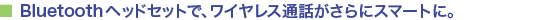 Bluetoothヘッドセット(別売)を耳にかけておいて、電話がかかってきたらヘッドセットのキーをプッシュ。両手が自由に使えるので、通話中でもパソコン操作などをストレスなく行えます。また、音声通話が耳元で行えるので、テレビ電話時にスピーカーホンの利用が困難な状況でも、通話相手の顔を見ながら会話を楽しめます。