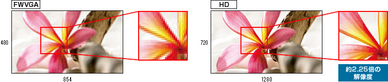 4.3インチ大画面で、1280×720pの高精細HDディスプレイを搭載。YouTubeなどのHD動画を高画質のまま表示したり、こまかい文字も細部まで鮮明に表示できます。さらに1677万色フルカラー表示に対応し、微妙なグラデーションや複雑な陰影なども、より美しくリアルに映し出せます。