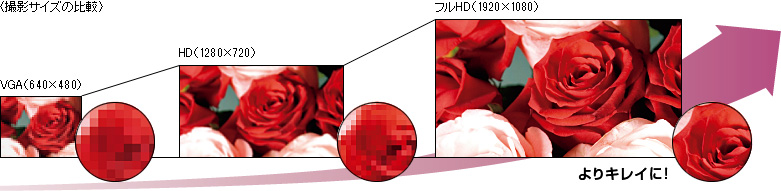 フルHD(1920×1080)サイズのムービー撮影が可能。カメラの起動も高速なのでムービーチャンスを逃しません。撮った動画はHDディスプレイで臨場感豊かに観賞できます。