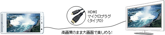 HDMIマイクロプラグ(タイプD)に対応したHDMIケーブルでフルハイビジョンテレビに接続でき、写真や動画を高画質のまま観賞できます。