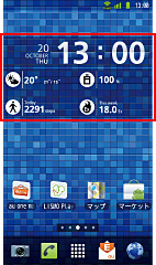 大きな文字のデジタル時計や天気、電池残量などさまざまな情報がひと目でわかるダッシュボードを、シンプルなアイコンとテキストで表現しました。