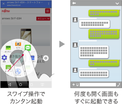 スワイプ操作で、よく使うアプリやショートカットをすぐに起動可能。