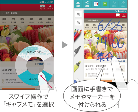 スワイプ操作をするだけでカンタンに起動し、画面を保存できます*。