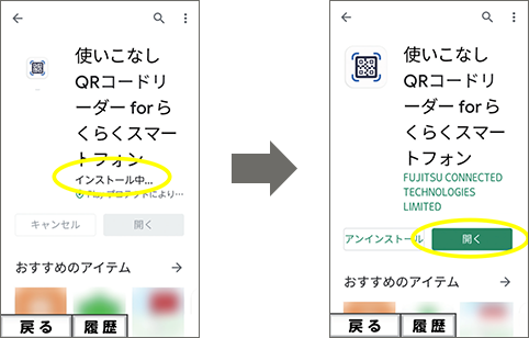 3. インストールが始まり「開く」が表示されたらダウンロード完了です。