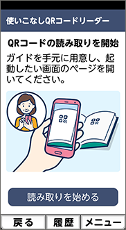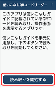 3. 使いこなしQRコードリーダー画面の[読み取りを始める]を押します。