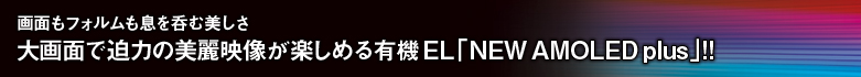 美しい色調を大画面で。1677万色フルカラーで、鮮やかに映像を描写する有機EL「NEW AMOLED plus」を採用しました。NTSC比110%という広い色再現性により、高精彩な映像が画面を彩ります。