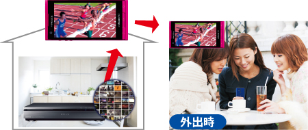 レグザブルーレイ(注2)で録画した番組をワイヤレスでレグザフォンにダビング(注3)して外出先でも視聴可能。通勤や待ち時間にも最大720p(注4)の高画質な映像が楽しめます。