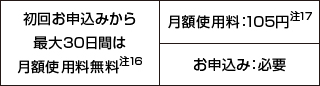 - 注16:お客さまより当サービス解約のお申出がない場合、無料期間終了後は有料となります。