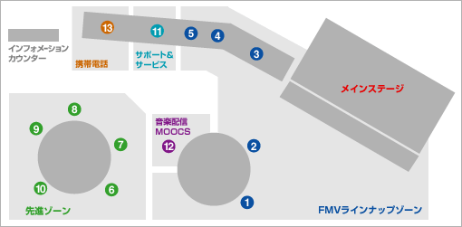 最新の携帯電話の展示や、FMVとの連携をご紹介します。